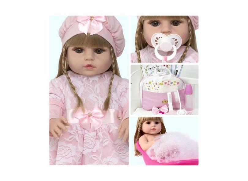 Boneca Tipo Reborn Loira Menina Corpo Silicone + Enxoval - Cegonha Reb