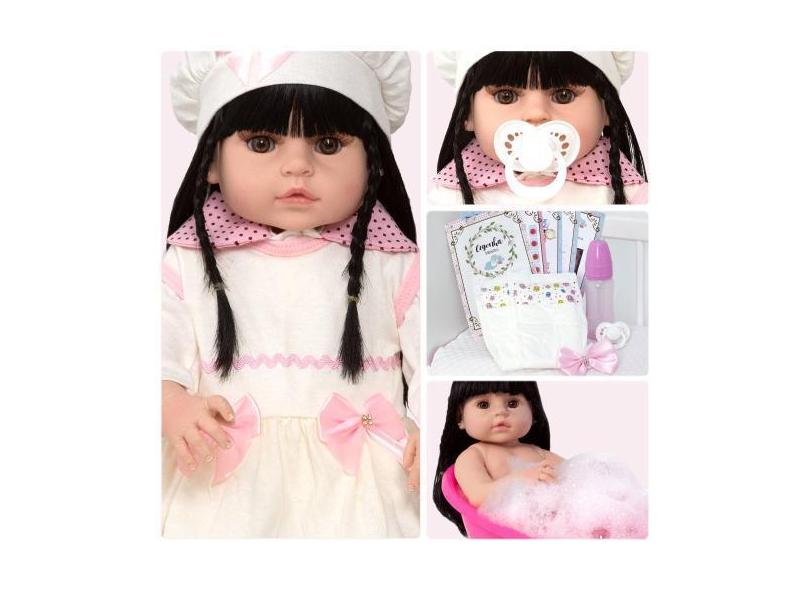 Boneca Tipo Reborn Menina Morena Corpo Silicone + Acessórios - Cegonha