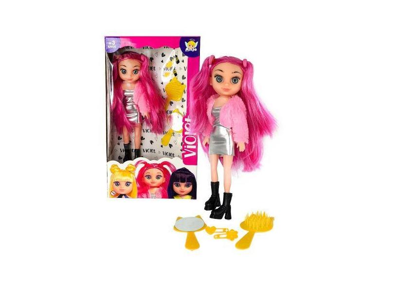 Boneca Violet 30cm Com Acessórios Como Pente Espelho E Prendedores De