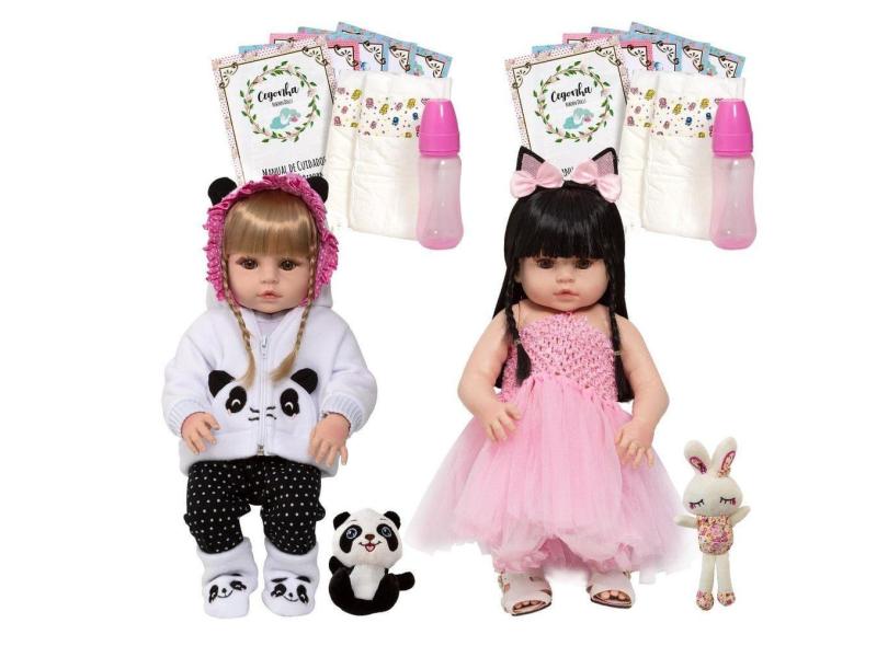 Bonecas reborn gêmeas cegonha - vinil siliconado, realistas, 46cm