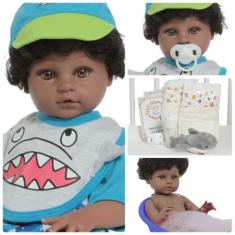 Boneco Reborn Príncipe Tubarão Recém Nascido Corpo de Vinil - Cegonha