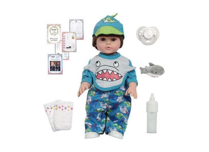 Boneco Reborn Tubarãozinho Cabelo Castanho Kit Acessórios - Cegonha Re