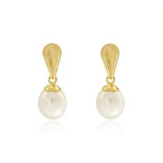 Brinco Em Ouro 18k Com Pérola Natural Gota