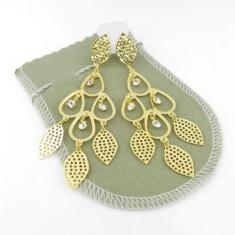 Brinco Feminino Folha + Strás Folheado Ouro BR313