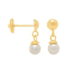 Brinco Infantil Rommanel Banhado A Ouro Bolinha Com Pérola 520275