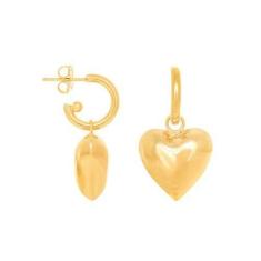 Brinco Rommanel Banhado A Ouro 18k Pequena Argola Com Coração Almofada Pendurado 522794