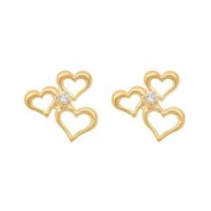 Brinco Rommanel Banhado A Ouro Corações Vazados Com Zircônia 525569