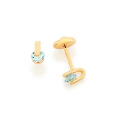 Brinco Rommanel Banhado Ouro Solitário Cristal Azul Infantil / Segundo Furo 523530