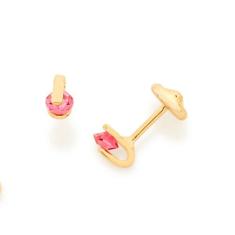 Brinco Rommanel Banhado Ouro Solitário Cristal Rosa Infantil / Segundo Furo 523530