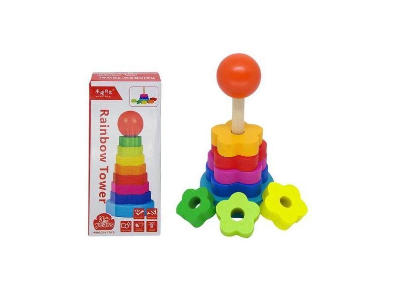 Brinquedo Educativo Madeira Torre Arco-Íris Formas 8 Peças - Open Trad