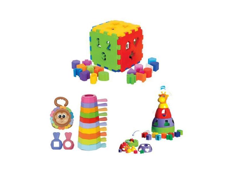 Kit 3 Brinquedo Educativo Encaixar Empilhar Bebe 1Ano Presente Menino