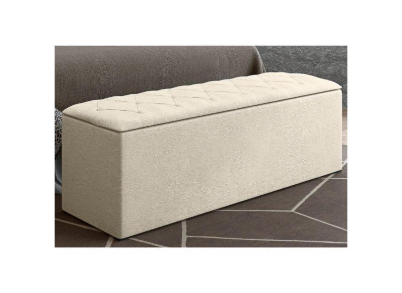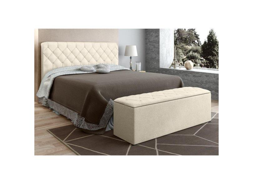 Cabeceira com Calçadeira Baú Paris para Colchão Box 140 cm Bege Suede Amassado - JS Móveis