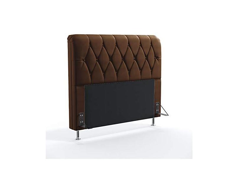 Cabeceira Estofada Decorativa Sirius 140 Para Cama De Casal Couro Artificial Marrom Aradecor