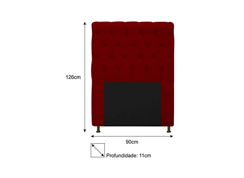 Cabeceira Kristal Estofada Capitonê 90 cm para Cama Box Solteiro Suede Bordô Quarto - AM Decor