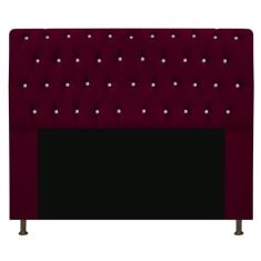 Cabeceira Lady Estofada com Strass 140 cm para Cama Box de Casal Suede Bordô Quarto - AM Decor