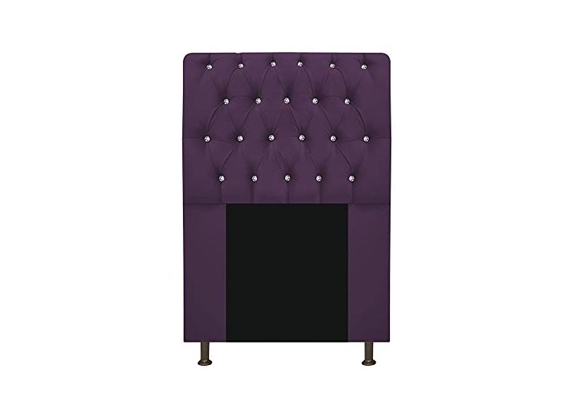 Cabeceira Lady Estofada com Strass 90 cm para Cama Box Solteiro Suede Roxo Quarto - AM Decor