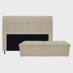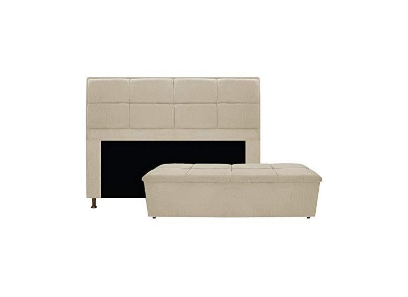 Kit Cabeceira e Calçadeira Munique 195 cm King Size Suede Bege - Doce Sonho Móveis