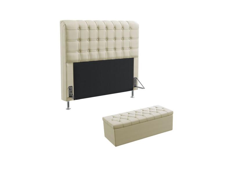 Kit Cabeceira Estofada Dama 140 Para Cama de Casal e Calçadeira Sagitarius Sued Bege Aradecor