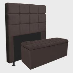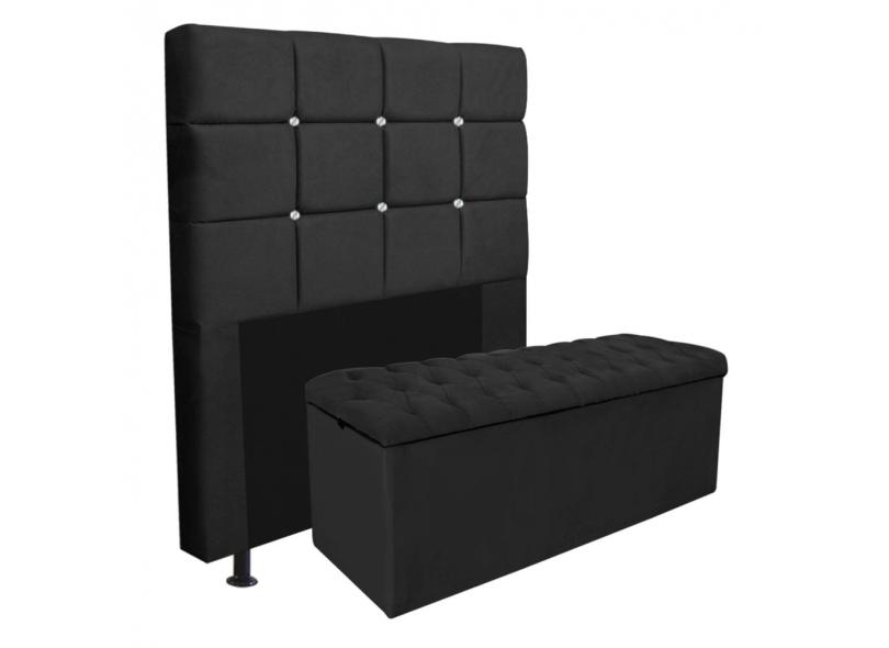 Kit Cabeceira Estofada e Calçadeira Recamier Espanha 195cm King Size Strass Suede - Ahazzo Móveis