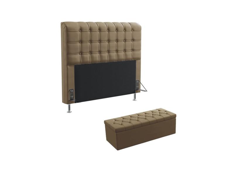 Kit Cabeceira Estofada Rana 140 Para Cama de Casal e Calçadeira Sagitarius Sued Capuccino Aradecor