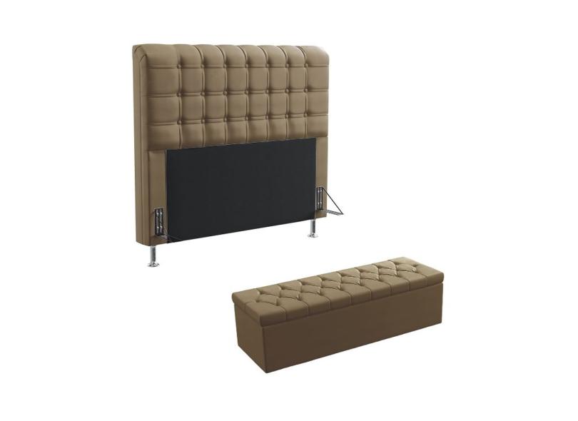 Kit Cabeceira Estofada Rana 195 Para Cama King e Calçadeira Sagitarius Sued Capuccino Aradecor