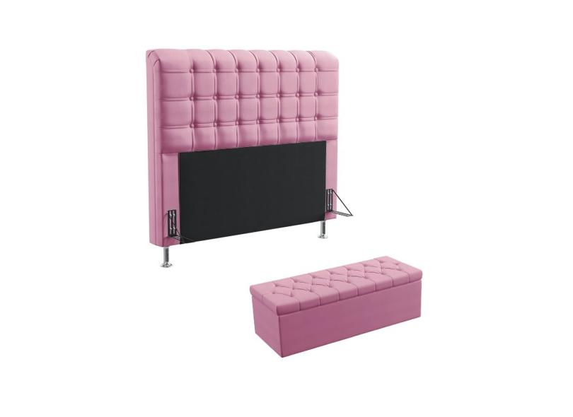 Kit Cabeceira Rana 160 Para Cama Queen e Calçadeira Sagitarius Sued Rosê Aradecor