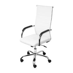 Cadeira Boxbit Florença Alta Rodízio Branca em P.U. Base Cromada Base Rodízio
