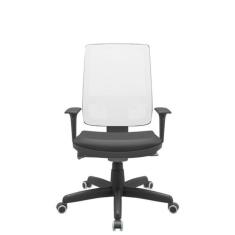 Cadeira Office Brizza Tela Branca Assento Vinil Preto Autocompensador