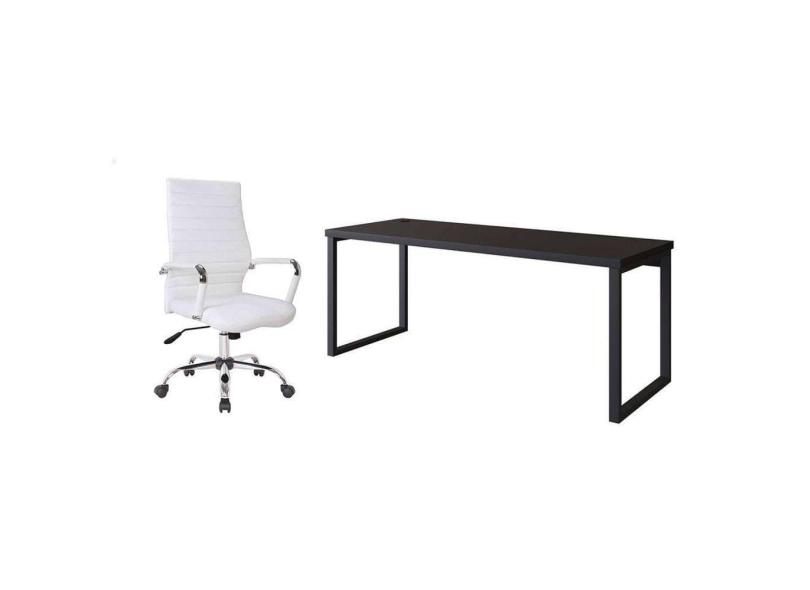conjunto de mesa miguel preta 190 cm com cadeira de escritório diretor giratória cleaner branca