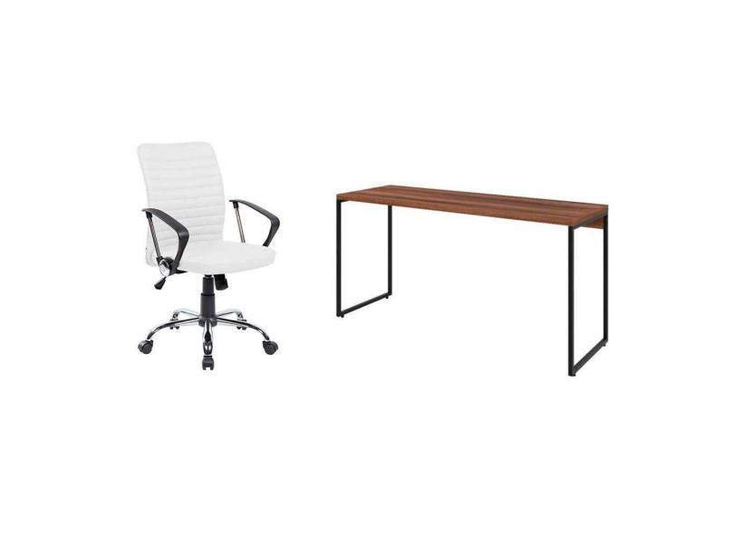 conjunto de mesa studio nogal 150 cm com cadeira de escritório diretor giratória oslo branca