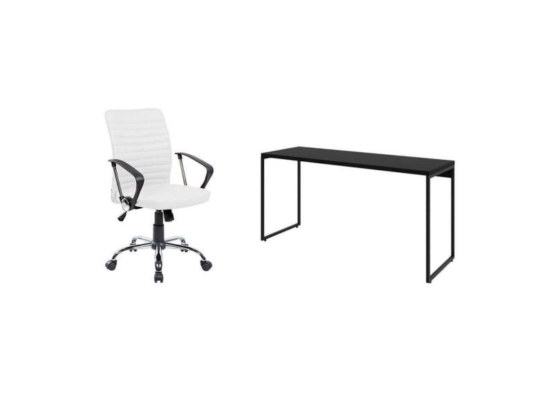 conjunto de mesa studio preta 150 cm com cadeira de escritório diretor giratória oslo branca