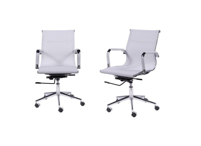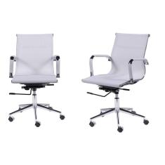 Kit 02 Cadeiras Boxbit Eames Office Tela Baixa Branca Base Rodízio