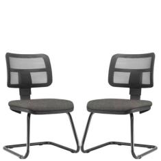 Kit 02 Cadeiras de Escritório Recepção Fixa L02 Zip Linho Escuro - Lyam Decor