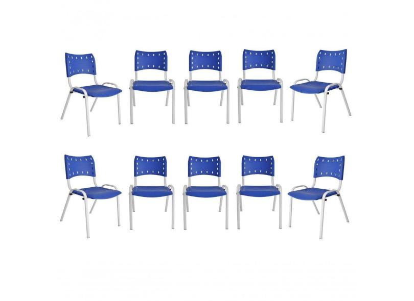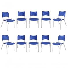 Kit 10 Cadeiras Iso Para Escola Escritório Comércio Azul Base Branca