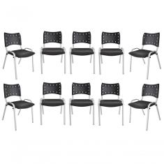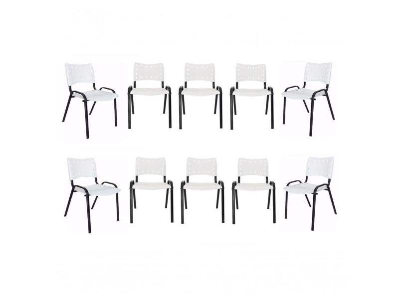 Kit 10 Cadeiras Iso Para Escola Escritório Comércio Branca Base Preta