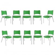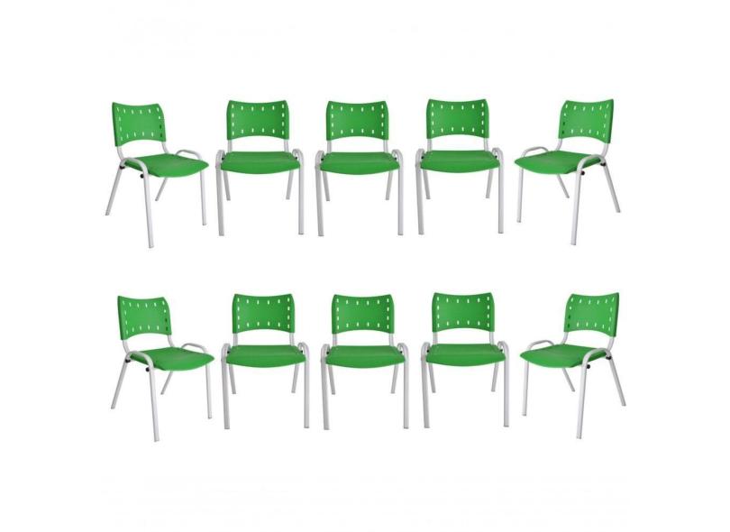 Kit 10 Cadeiras Iso Para Escola Escritório Comércio Verde Base Branca