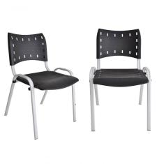 Kit 2 Cadeira Iso para Escola Escritório Comércio Preta Base Branca