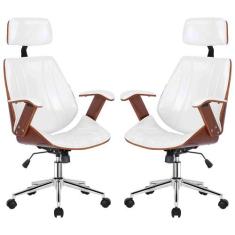 Kit 2 Cadeiras de Escritório Juliette Presidente Giratória Branca - Gran Belo