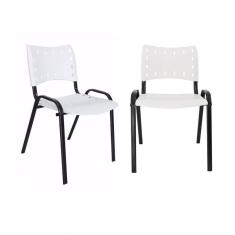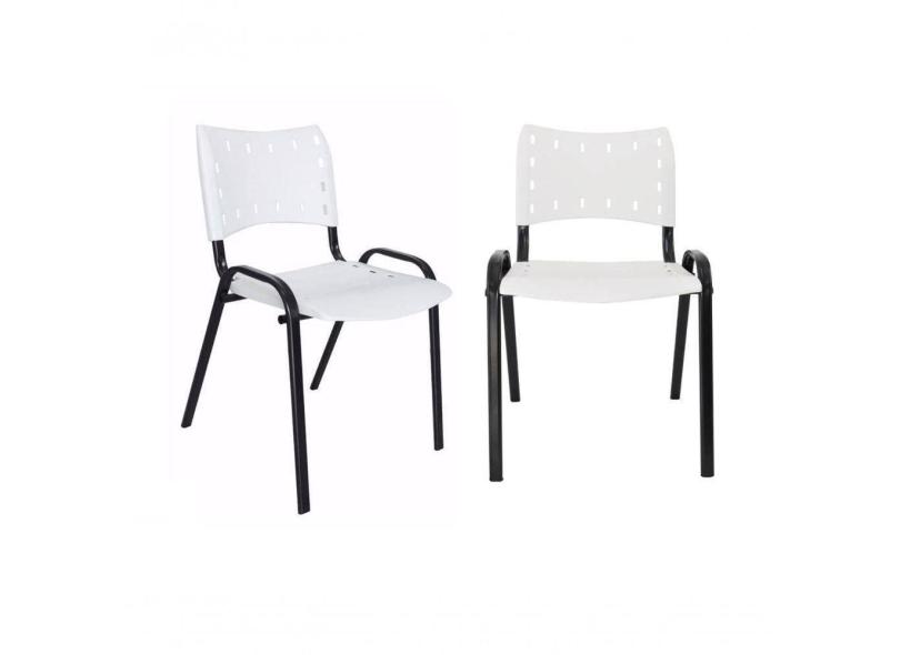 Kit 2 Cadeiras Iso para Escola Escritório Comércio Branca Base Preta