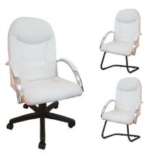 Kit 3 Cadeiras Escritório Day Brancas 1 Giratória E 2 Fixas