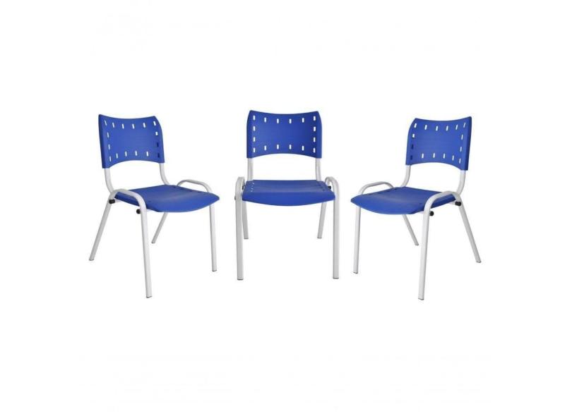 Kit 3 Cadeiras Iso para Escola Escritório Comércio Azul Base Branca