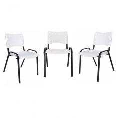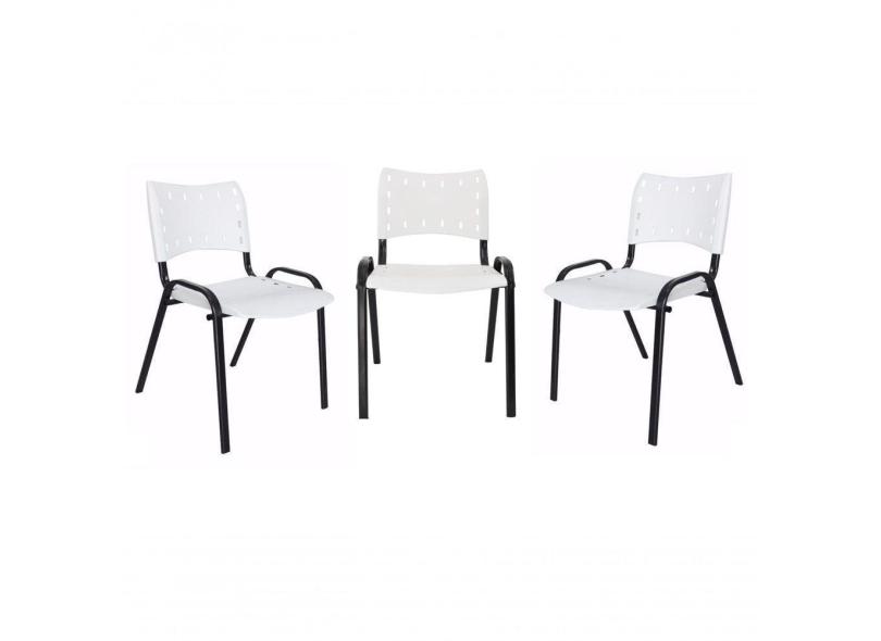 Kit 3 Cadeiras Iso Para Escola Escritório Comércio Branca Base Preta