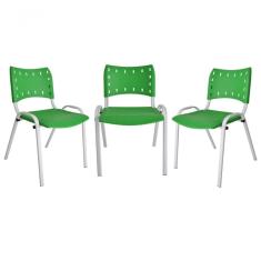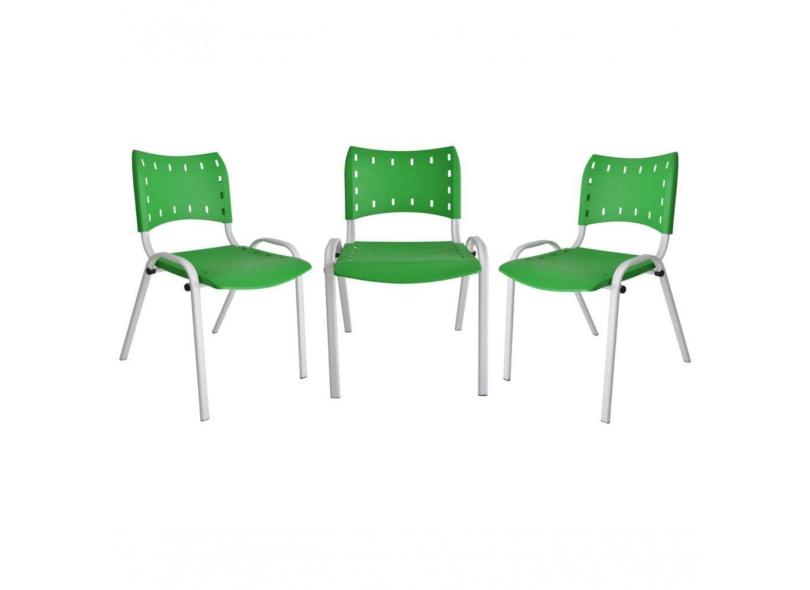 Kit 3 Cadeiras Iso para Escola Escritório Comércio Verde Base Branca
