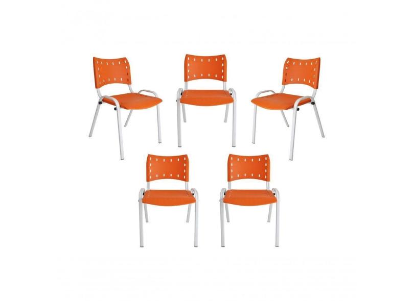 Kit 5 Cadeiras Iso Para Escola Escritório Comércio Laranja Base Branca