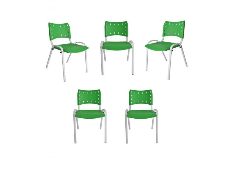 Kit 5 Cadeiras Iso Para Escola Escritório Comércio Verde Base Branca