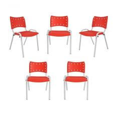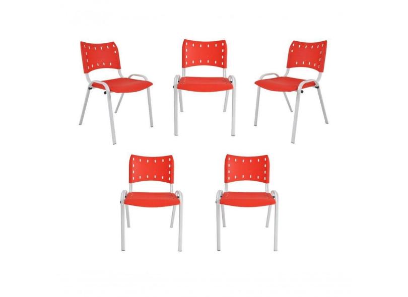 Kit 5 Cadeiras Iso Para Escola Escritório Comércio Vermelha Base Branca