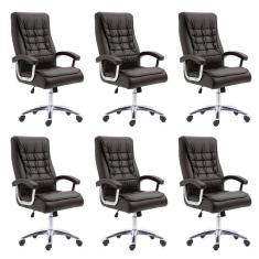 Kit 6 Cadeiras Big Mola Ensacada Escritório Pres Giratória em Couro com Nr17 Espresso Móveis Marrom