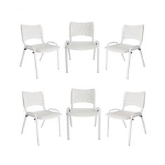 Kit 6 Cadeiras Iso Para Escola Escritório Comércio Branca Base Branca