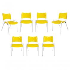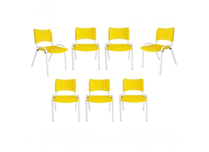 Kit 7 Cadeiras Iso Para Escola Escritório Comércio Amarela Base Branca