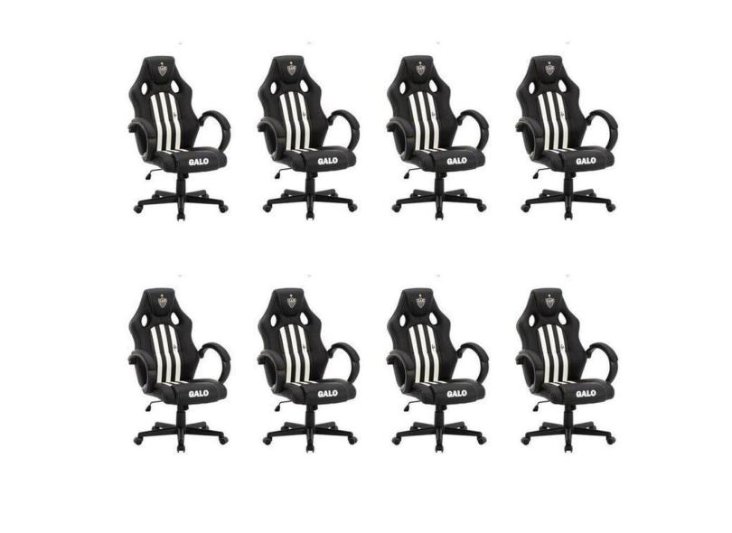 Kit 8 Cadeiras Gamer Atlético Mineiro Cam 3316 Espresso Móveis Preta/branca Preto